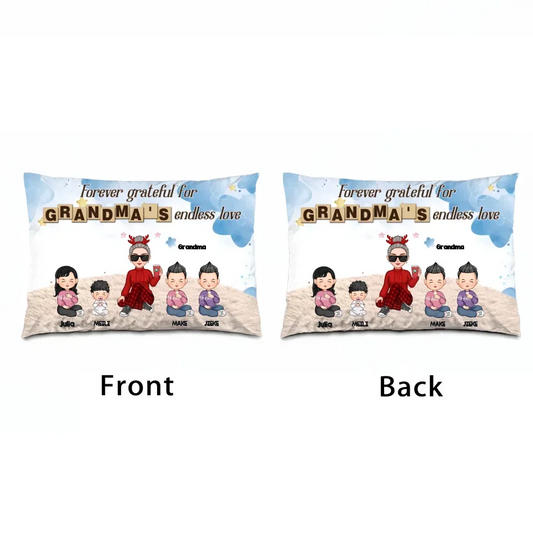 Grandma & Grandkid Sitting On Heart Pattern Moon - Personalized Pillow 714416