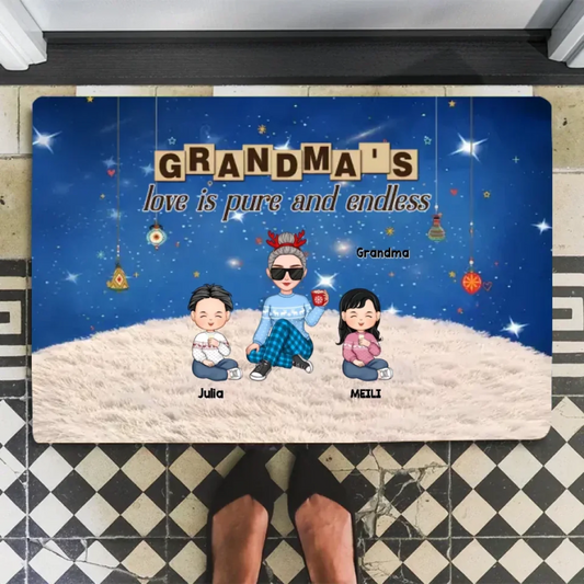 Grandma & Grandkid Sitting On Heart Pattern Moon - Personalized Mat 709174-D