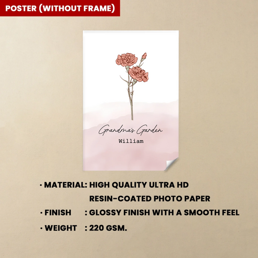 Grandma's Custom Garden: Personalized Grandchildren Flower Art Poster, Canvas, Ornament, and Metal Sign – Perfect for Home Decor or Gift 706241-706459