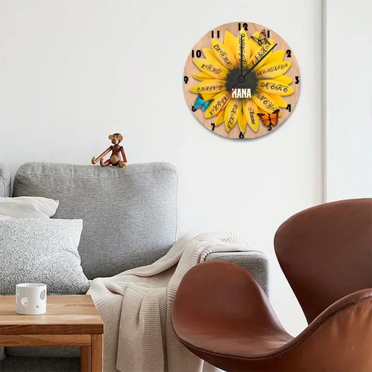 Sunflower Grandma And Grandkids - Personalized Grandma Wall Clock 736312