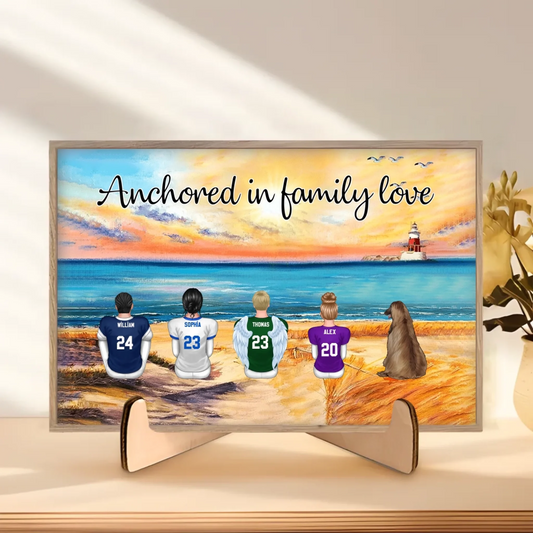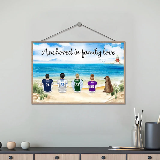 Beach Landscape Family Sitting Back View - Wood Framed Canvas - Ideal Gift for Loved Ones 693061