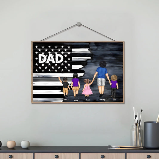 Daddy & Kids, Together We're A Team - Family Personalized Custom Horizontal Poster - Father's Day, Birthday Gift For Dad 746584-748381