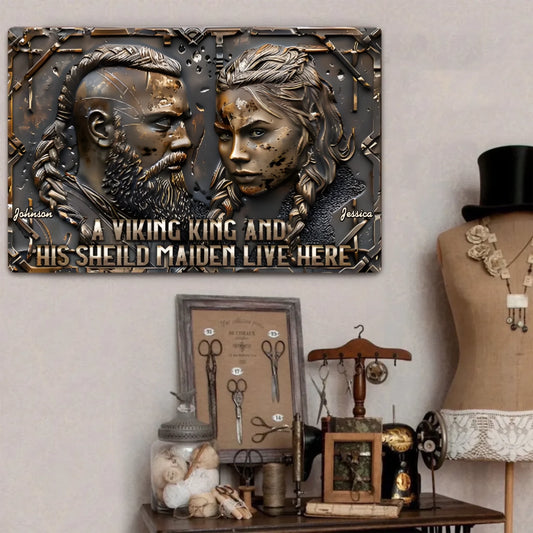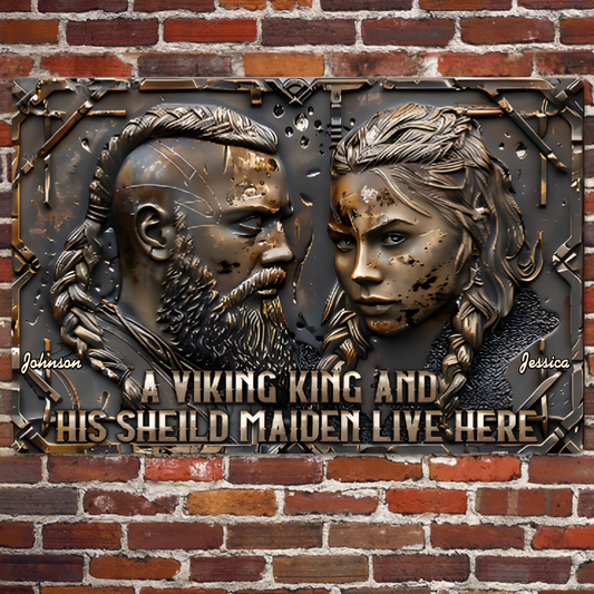 A Viking King And His Shieldmaiden Live Here - Personalized Viking Rectangle Metal Sign 736419-736440