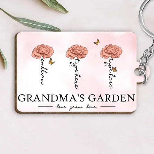 Grandma's Garden Love Grows Here Beautiful Birth Month Flower Gift For Grandma Mom Personalized Keychain 683457-684494 684490