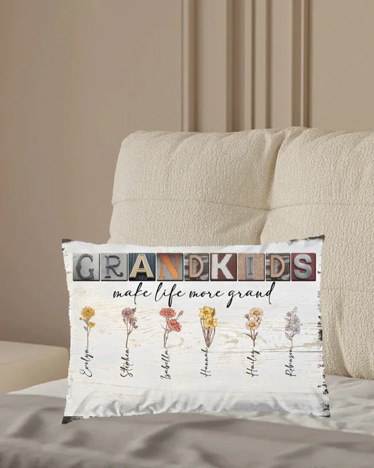 Grandkids Make Life More Grand - Personalized Pillow - Birth Month Flowers 710303-B