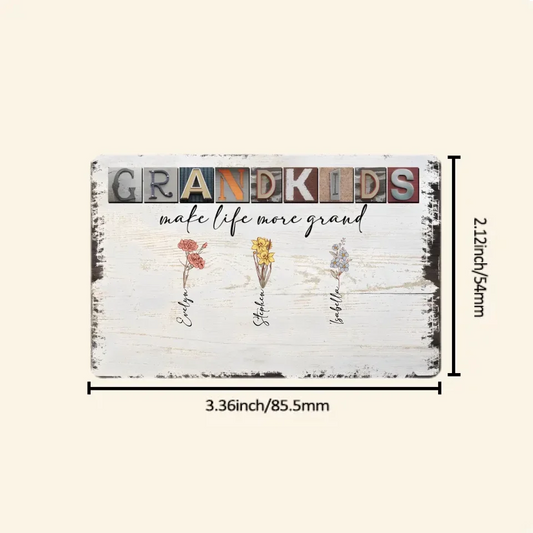 Grandkids Make Life More Grand - Personalized Wooden Plaque - Birth Month Flowers 710303