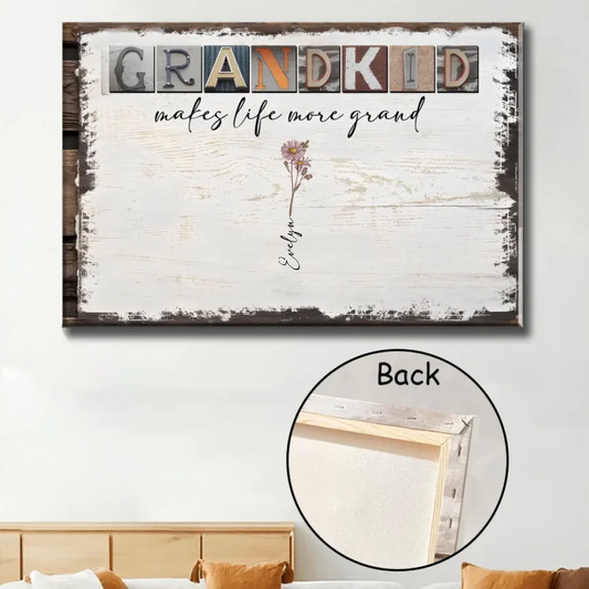 Grandkids Make Life More Grand - Personalized Wrapped Canvas - Birth Month Flowers 710303-711101