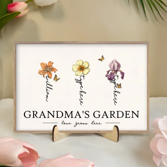 Grandma's Garden Love Grows Here Beautiful Birth Month Flower Gift ForGrandma Mom Personalized Plaque 684540