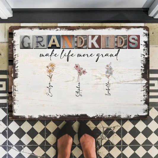 Grandkids Make Life More Grand - Personalized Doormat - Birth Month Flowers 710303-D