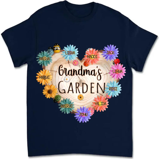 Personalized Grandma Garden Heart Flower Shirt, Custom Grandma With Grandkids Flower Wood Heart 766712-766798
