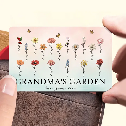 Grandma's Garden Love Grows Here Beautiful Birth Month Flower Gift For Grandma Mom Personalized Wallet Card 684539