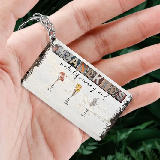 Grandkids Make Life More Grand - Personalized Acrylic Keychain- Birth Month Flowers 736361