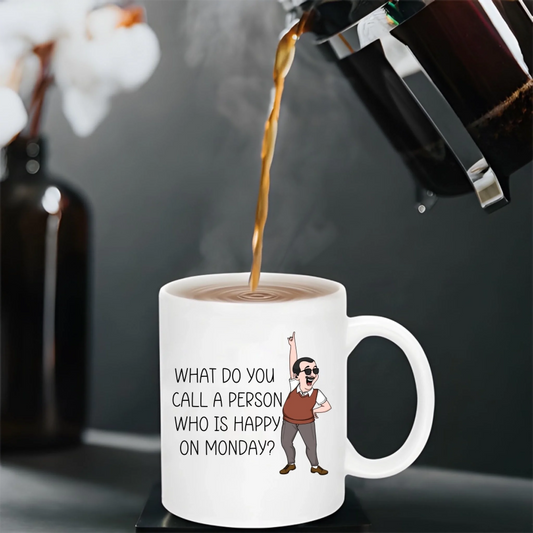 What Do You Call A Person Happy On Monday Personalized Mug, Funny Retirement Gift For Colleagues, Mom, Dad 796054
