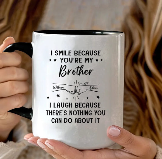 I Smile Because You're My Brother - Family Personalized Custom Black Mug - Gift For Family Members 769513