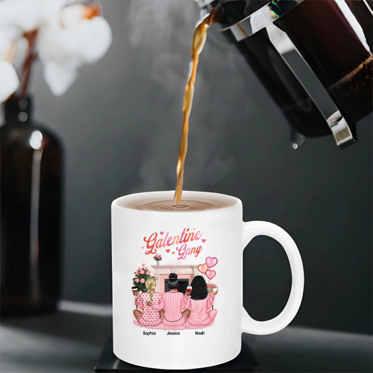 Galentine Gang Pretty Besties Sisters In House Personalized Mug, Valentine's Day Mug, Social Club, Besties Gift 768237