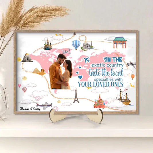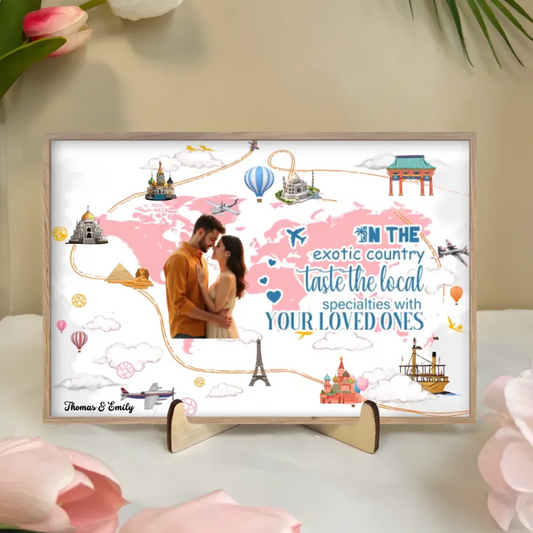 Take your beloved one and travel to every corner of the world together - Personalized Wooden table sign ornaments 749901