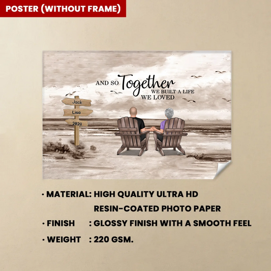 Seaside Memories - Personalized Vintage Beach Couple Poster or Canvas - A Timeless Anniversary Gift for Him & Her 702467-709196