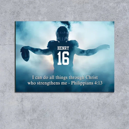 Christian Football Player Personalized Canvas, Wall Football Art Print, Custom Framed Canvas 738843-739317