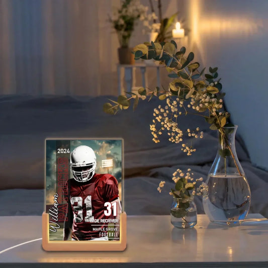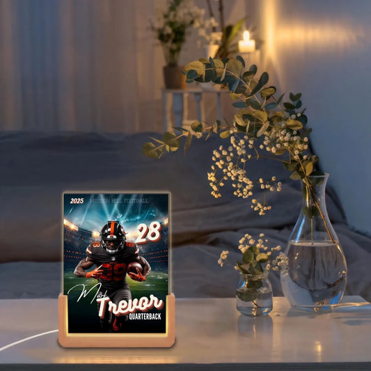 Football LED acrylic display Backdrop | Background For Senior Sports LED acrylic display Custom Football Card | Personalized LED acrylic display Senior Banners, Custom Football Card 737028