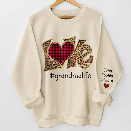 Love This Grandma Life - Family Personalized Custom Unisex Sweatshirt With Design On Sleeve - Christmas Gift For Mom, Grandma 679931-680049