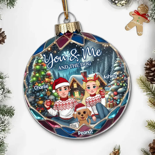 Animated Couple And Dogs Cats Beautiful Christmas Personalized Acrylic Ornament, Christmas Gift For Family 710367