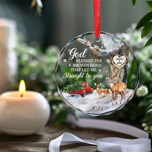 This Ornament Celebrates The Love That Binds Us - Couple Personalized Custom Circle Glass Ornament - Christmas Gift For Husband Wife, Anniversary 682534