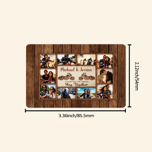 Motorcycle Name Sign, Personalized Couple Photo Collage Wallet Card - Gift for Biker Couple 747794-Q