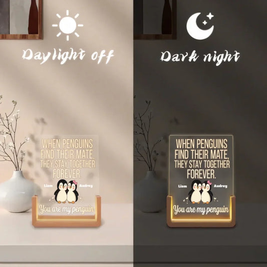 Custom Cute Couple Penguin- LED Acrylic Plaque 748457