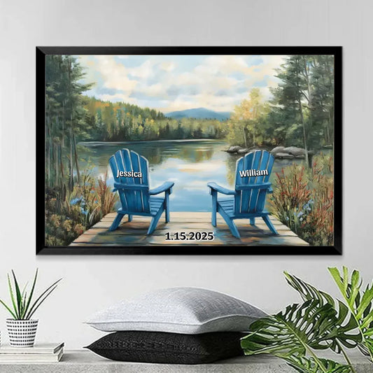 Custom Canvas Prints Tranquil Lakeside Chair Valentine’s Wall Decor 761050