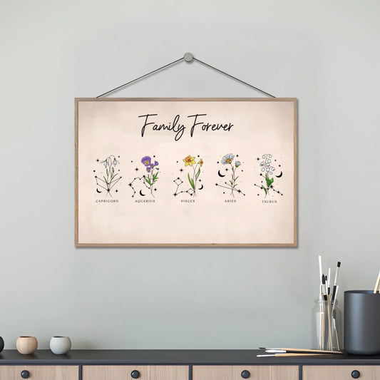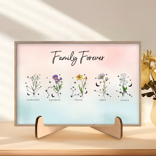 Zodiac Sign Birth Month Flower Family Personalized Wooden Plaque 701457