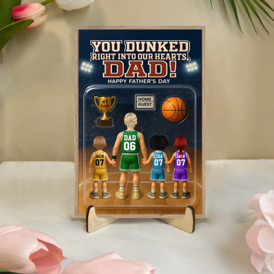 You Dunked Right into my Heart Dad, Basketball Custom Figure Personalized Wooden Plaque, Father's Day Gift for Dad, Gift for Husband 883622