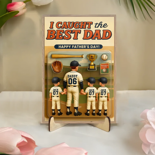 We Caught the Best Dad Baseball Custom Figure Personalized Wooden Plaque, Father's Day Gift for Dad, Gift for Husband 883404