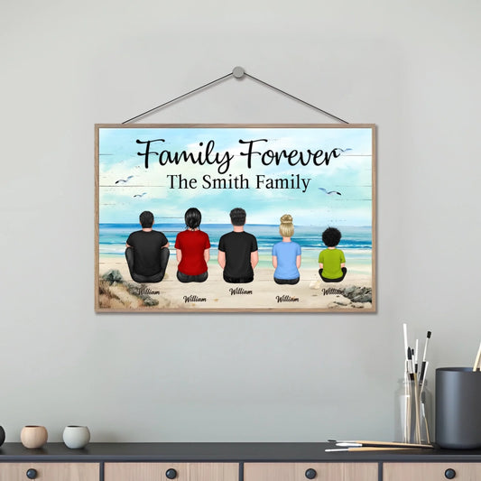 Retro Vintage Family Sitting Beach Landscape Personalized Horizontal Wooden Plaque 701216