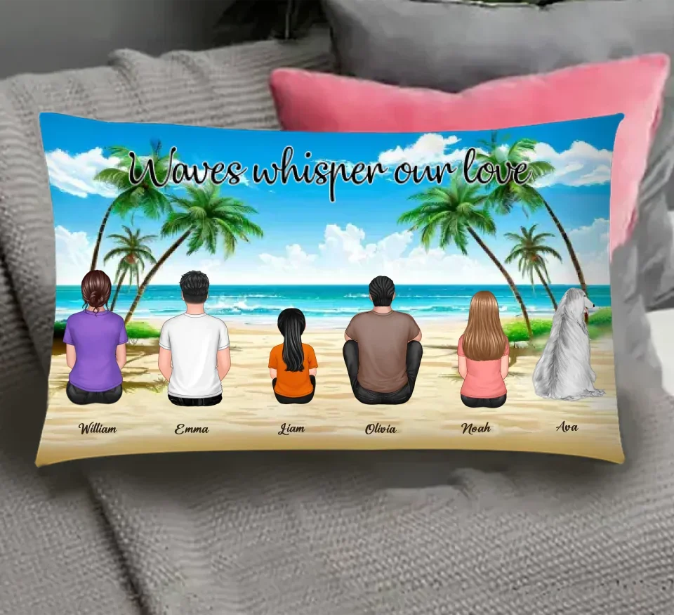 Beach Landscape Family Sitting Back View - Pillow - Ideal Gift for Loved Ones 693270