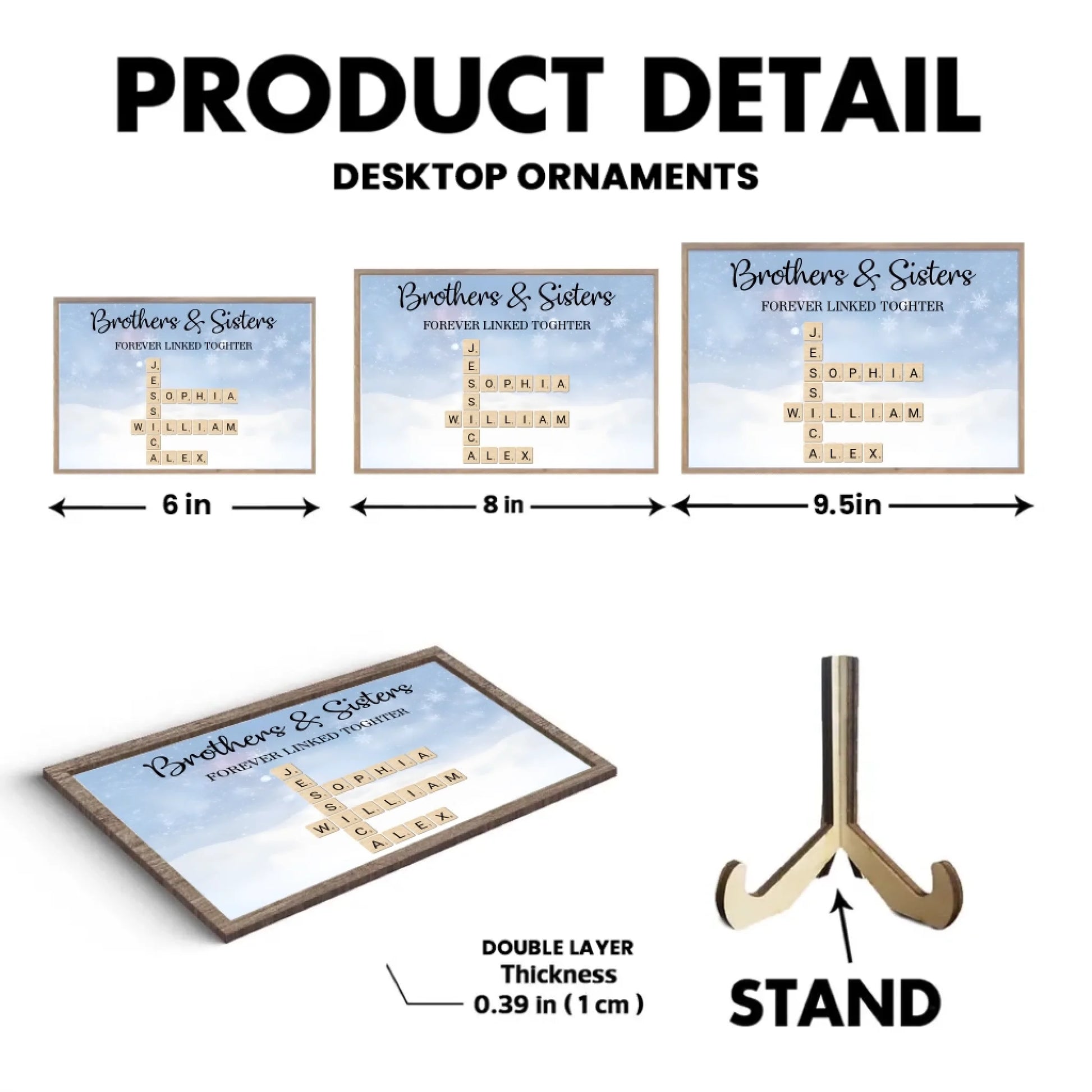 Brothers & Sisters Forever Linked Together Crossword Puzzle Art Personalized Custom Wooden Plaque, Gift For Brothers, Sisters, Siblings, Family 708111