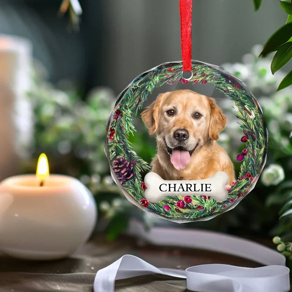 Custom Photo Journeying To The Rainbow Bridge, Leaving Love In Every Step - Memorial Personalized Custom Circle Glass Ornament - Christmas Gift, Sympathy Gift For Pet Owners, Pet Lovers 685968