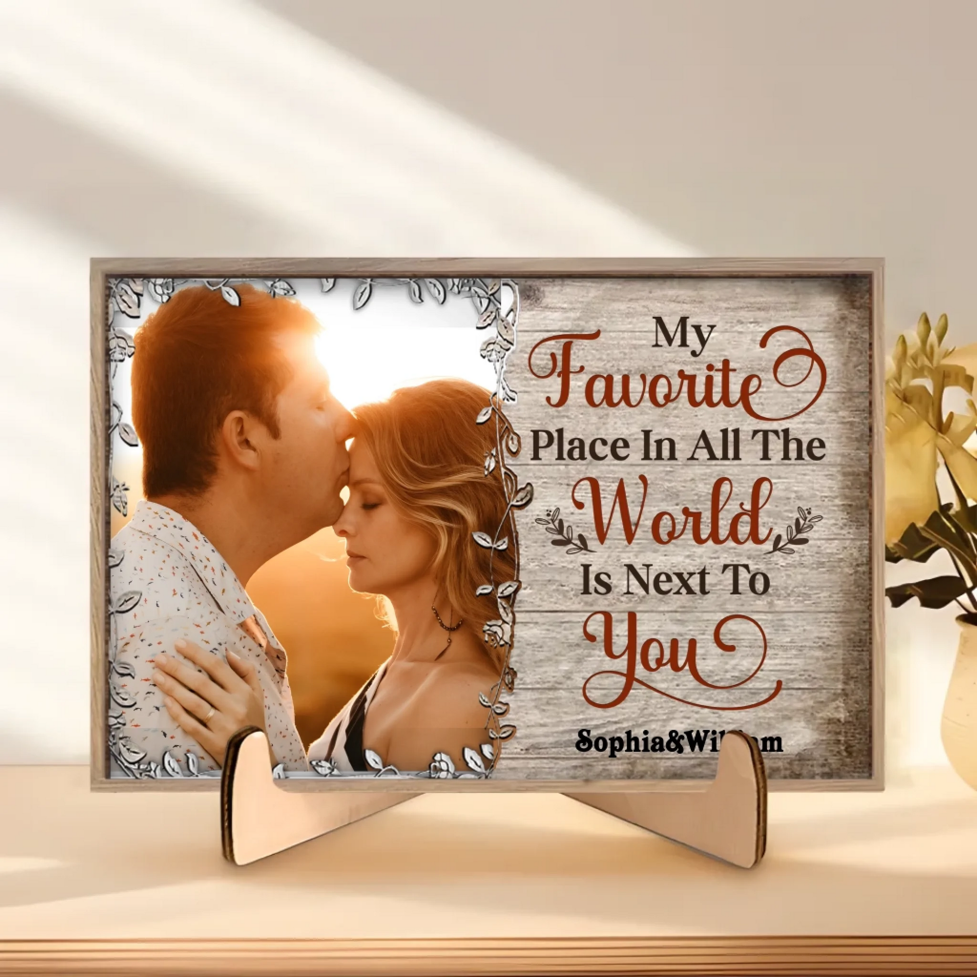 Custom Photo My Favorite Place In All The World Is Next To You - Gift For Couples - Personalized Custom Wooden Plaque 715457
