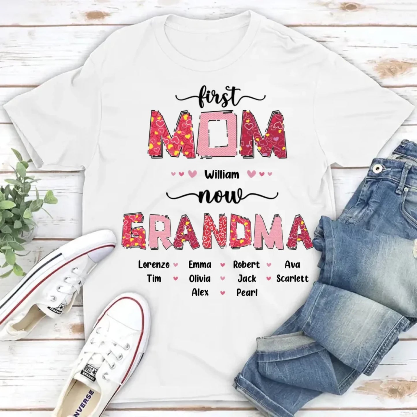 First Mom Now Grandma - Family Personalized Custom Unisex T-shirt, Hoodie, Sweatshirt - Gift For Mom, Grandma 787921-789361