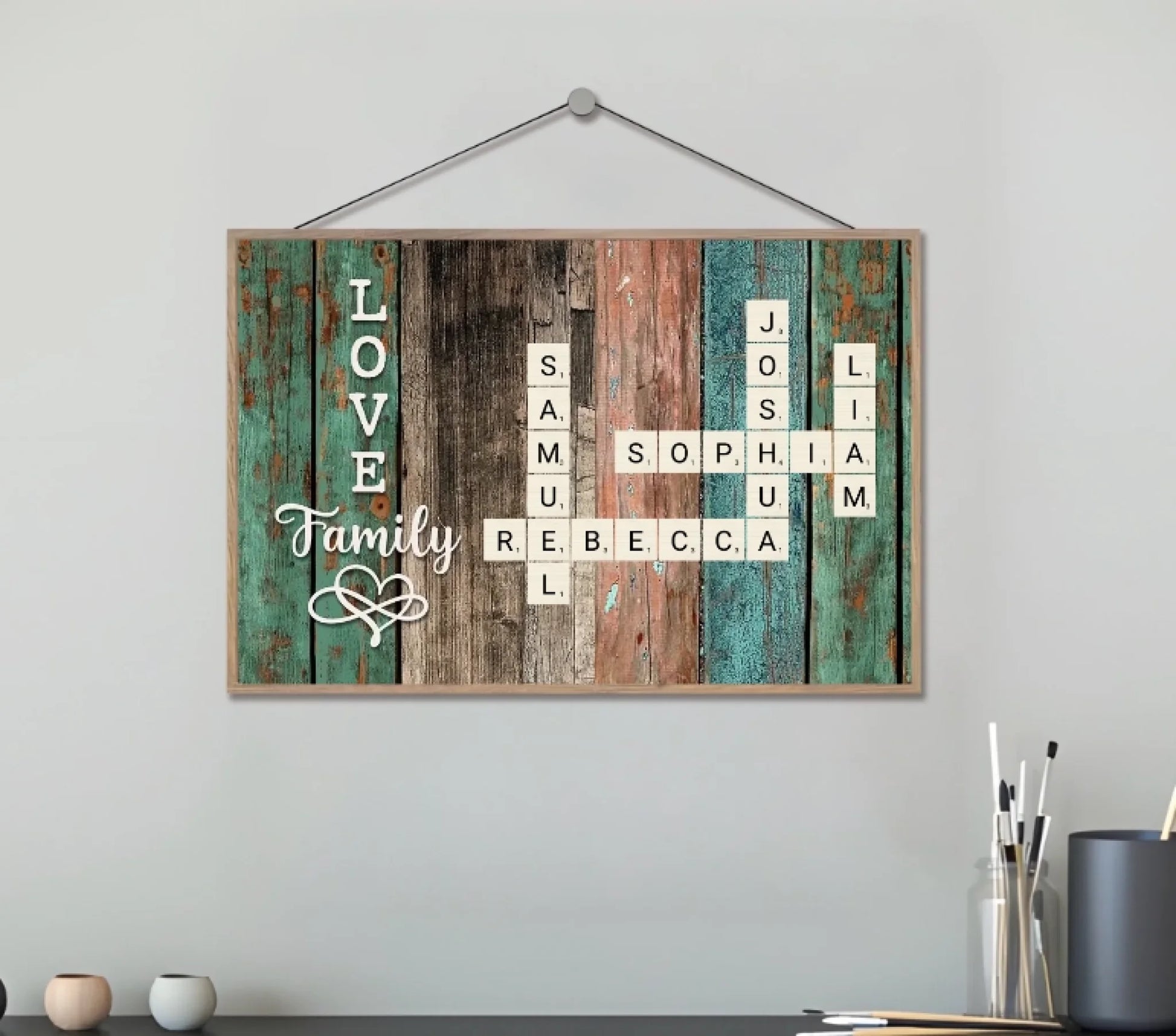 Personalized Family Crossword Art - Created In A Moment, Treasured Forever Wooden Plaque 699012-743347