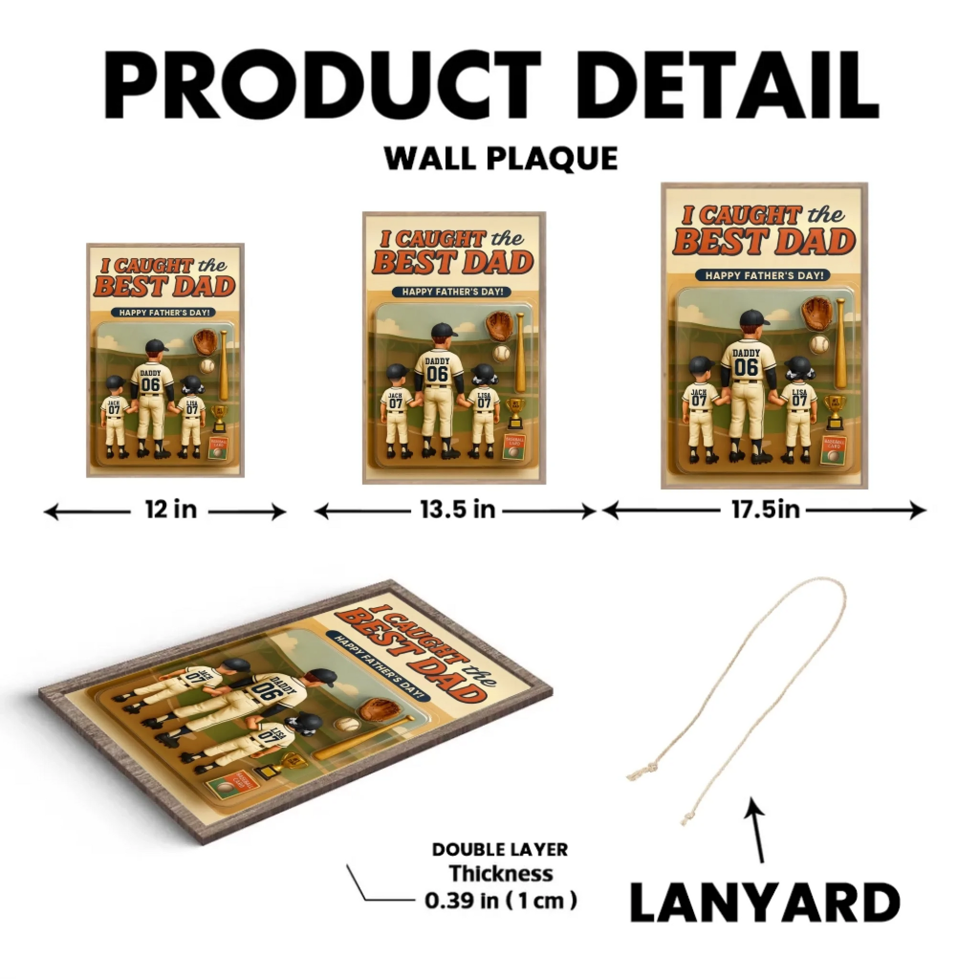 We Caught the Best Dad Baseball Custom Figure Personalized Wooden Plaque, Father's Day Gift for Dad, Gift for Husband 883404